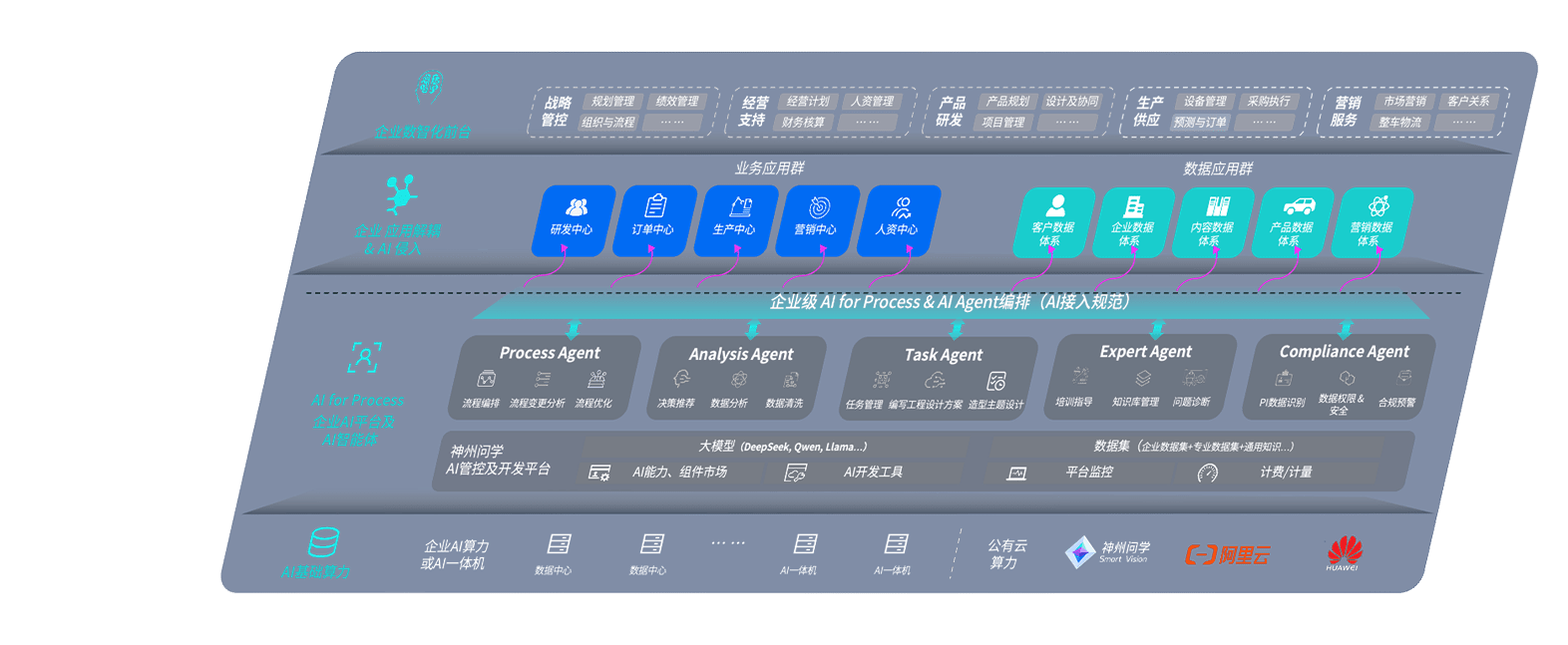 55世纪问学智车解决方案是一套基于AI技术的汽车行业智能化系统,,,,覆盖从底层算力到顶层AI应用的全栈方案。。。方案由算力层、、、模型层和应用层组成:算力层,,,,方案支持多种一体机配置,,具备云端灵活部署、、多云适配以及动态优化计算资源的能力;模型层,,,,55世纪问学平台版提供了企业级AI应用一站式构建与管理平台,,,支持基于后训练强化技术的汽车企业专属模型的训练、、评测和运营;应用层,,55世纪问学DeepSeek版提供包括超级员工、、、智能招采、、智能营销、、、、智能客服、、AI for BI等一系列解决方案,,可助力汽车行业实现数字化转型,,让管理更智能、、响应更敏捷。。