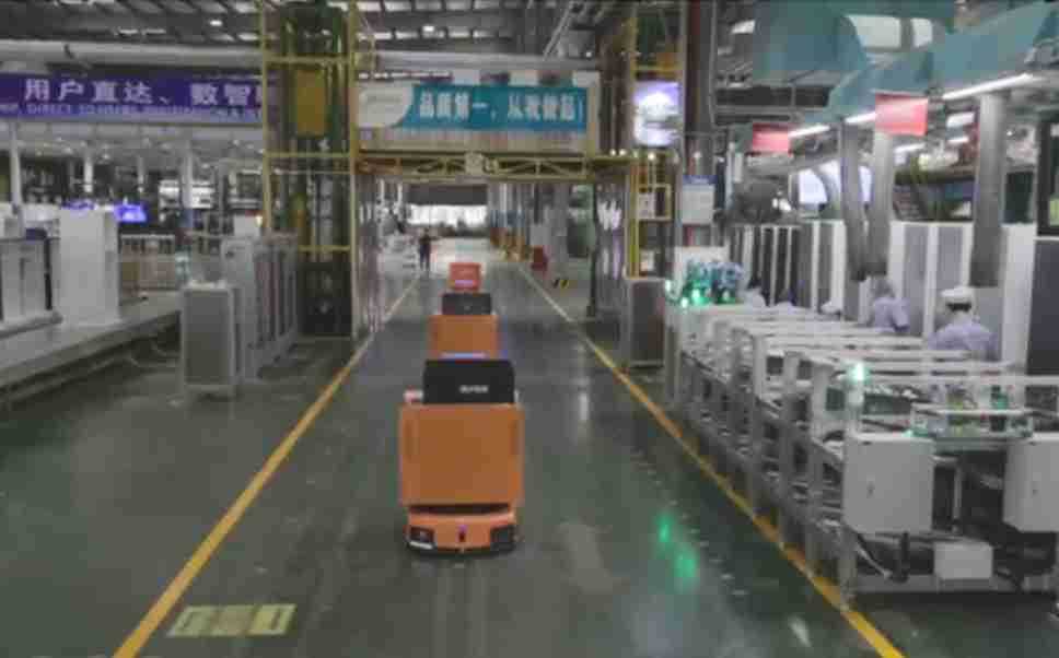 为车载冰箱物流配送打造的智能解决方案,,,,包含产中物流通过潜伏举升AMR搬运至线边,,,产后成品物流智能仓储,,流程包含产中物流智能齐套入库,,,线边安灯叫料AMR智能配送至线边,,,成品入库、、、、出库,,,,通过无人堆高车机器人,,智能仓储管理替代人工作业管理,,,实现更高存储、、、更高效率、、、、更具柔性化的解决方案。。。